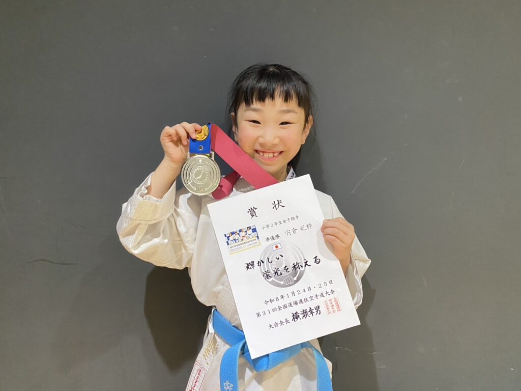 2026年1月24日・25日で開催された全国道場選抜空手道大会にて、 宍倉妃粋選手が小学2年生女子組手の部で準優勝しました!🥈🎉 おめでとう! ご父兄の皆さんもおめでとうございます😄 道場の皆さんも応援ありがとう! お知らせ よかったらシェアしてね! URLをコピーしました! URLをコピーしました! 葵會舘本部道場 2025年稽古納め 東京支部 2026新帯稽古始動! 関連記事 東京支部 2026新帯稽古始動! 2026年2月2日 葵會舘本部道場 2025年稽古納め 2025年12月30日 葵會舘東京支部 2025年度昇級審査 2025年12月12日 第14回千県県中学生空手道選抜大会 2025年12月12日 第14回関東少年少女空手道選手権大会 2025年12月12日 公式サイトリニューアルのお知らせ 2025年12月2日